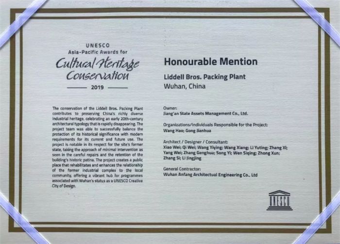 “文化遺產(chǎn)保護”系列獎項是由聯(lián)合國教科文組織于2000年設(shè)立,旨在表彰為保護具有歷史價值的建筑、保護并傳承傳統(tǒng)文化遺產(chǎn)、發(fā)揚地域文化價值等方面做出貢獻的組織或個人。今年的評獎活動收到了來自亞太地區(qū)澳大利亞、不丹、柬埔寨、中國、印度、印度尼西亞、馬來西亞、緬甸、尼泊爾、新西蘭、巴基斯坦、菲律賓、韓國等14個國家的57項參賽作品,這一數(shù)字也創(chuàng)下了歷年新高。最終,中國4個項目斬獲保護類獎,1個項目斬獲新設(shè)計獎,武漢平和打包廠保護與再利用工程所獲獎項屬保護類獎。