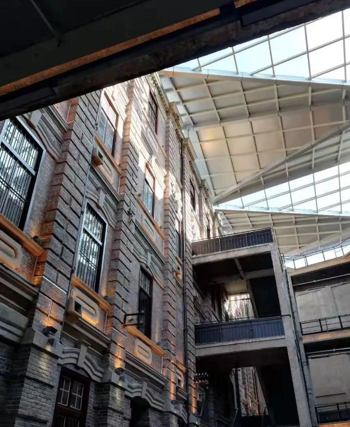 平和打包廠位于武漢市江岸區(qū)青島路,始建于1905年,是英國人在漢口開設(shè)最早的棉花打包廠,是承載武漢近現(xiàn)代工商業(yè)發(fā)展歷史的重要工業(yè)遺產(chǎn)建筑,現(xiàn)為市級文保單位。繼首座廠房建成后,歷經(jīng)1918年、1933年、1949年以及解放后不同時期的加建,平和打包廠形成了由7棟風格不盡相同的建筑單體組成的工業(yè)建筑群。不同建筑單體之間通過連廊、外掛樓梯等交通空間及頂棚連為一體。其原始功能包括棉花打包廠及洋行辦公,1954年改為庫房,后續(xù)功能變化包括廠房、臨街商鋪、賓館等。在經(jīng)歷保護與再利用工程之后,成功轉(zhuǎn)型為漢口文創(chuàng)谷中的重要文化與創(chuàng)意中心,集辦公、會展、沙龍、公共活動、休閑與旅游功能于一體,目前已經(jīng)是武漢市最重要的文化遺產(chǎn)網(wǎng)紅打卡地。