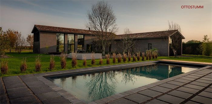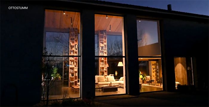住宅耗時3年時間才完成,由兩個矩形結(jié)構(gòu)組成,排列成一個L形。兩層建筑的主樓是住宅的核心,設(shè)有客廳、餐廳、廚房和帶浴室的臥室,并配置OTTOSTUMM-W75TB高性能斷熱鋼;而相鄰的單層側(cè)翼附樓則設(shè)有洗衣房、客房和車庫。