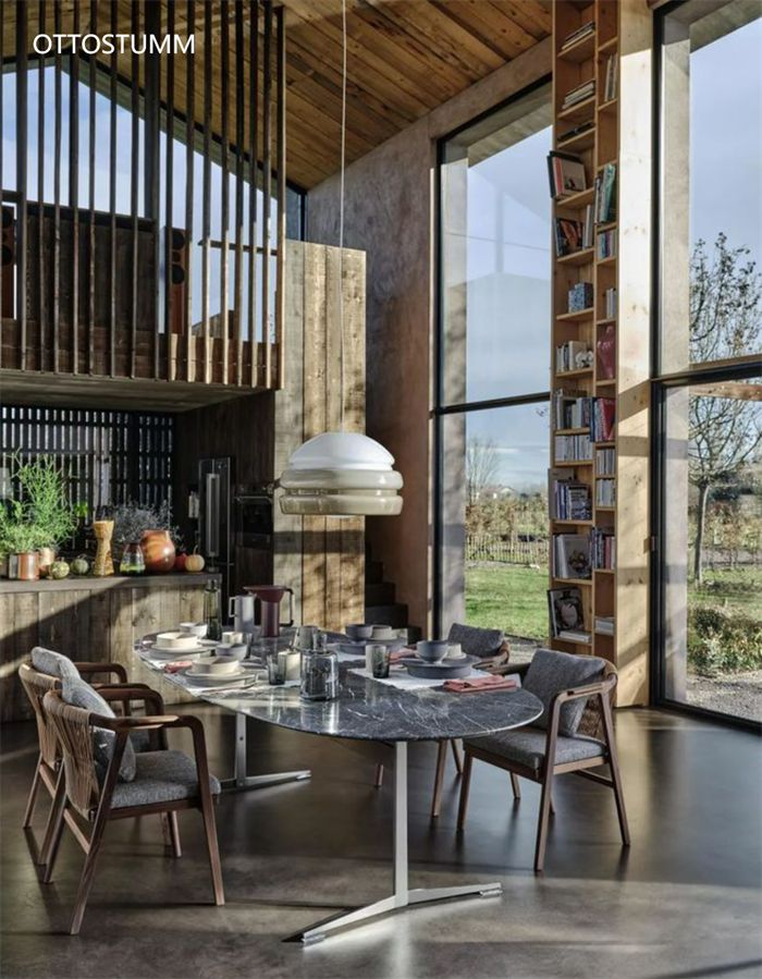 白天,透過OTTOSTUMM-W75TB高性能斷熱窗,在灑滿自然光線的餐廳,搭配大理石制的餐桌以及編織扶手椅,提供了一片消磨時光或招待朋友的樂土。每天在這里用餐,可享受滿眼田園風(fēng)光,不會辜負(fù)任何美食與佳釀。