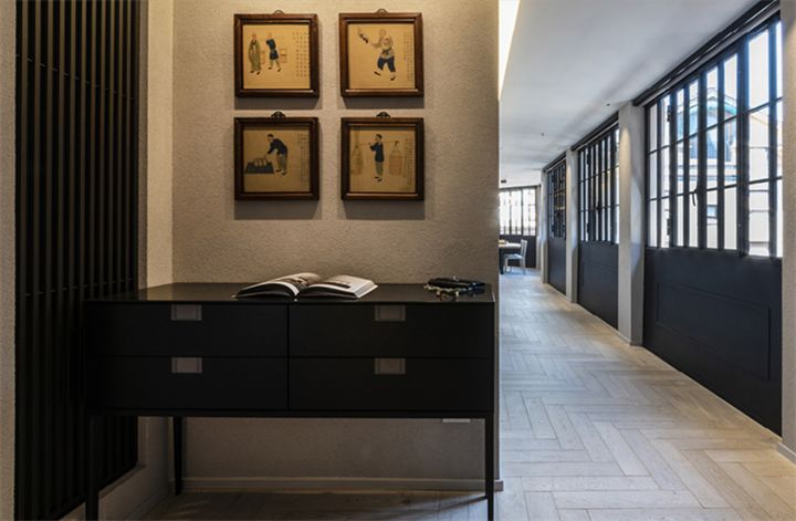 客餐廳的光線來自于臨街的兩扇黑框金屬,