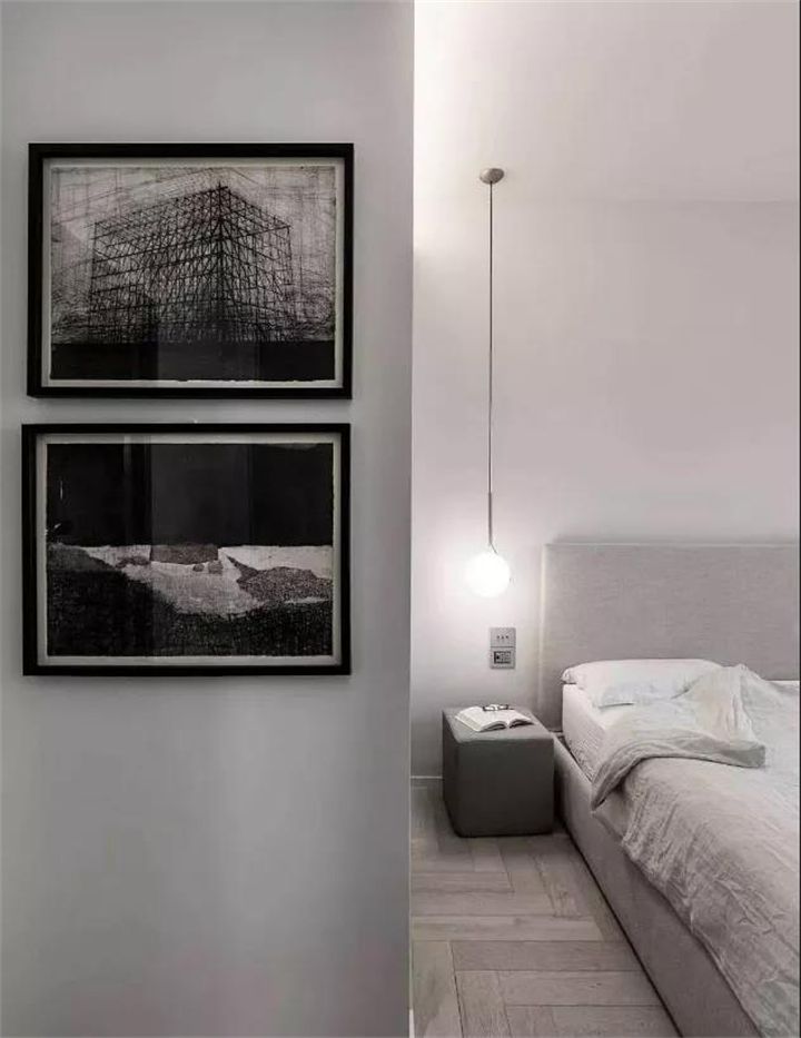 上層的臥室空間也以灰白色進行搭配,