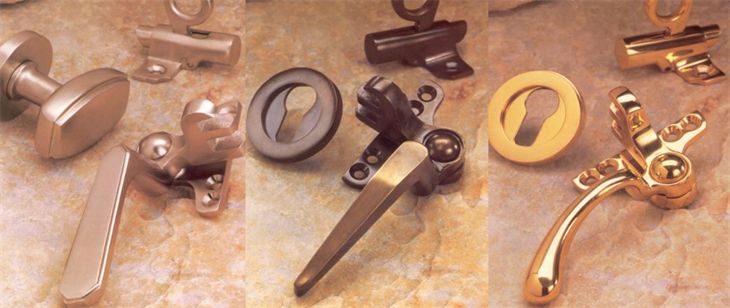 鋼窗可以使用人們可以想象得出的任何類型的五金部件。廠商可以得到沒有任何限制的把手及開關裝置。此外, 對于那些50年以上的陳舊五金部件的更換也沒有問題。同樣, 安裝在鋼窗上的五金部件也不會因過度使用而脫落或松動。從整體美觀角度及為建筑設計師角度考慮而言,日朗專門選擇了與鋼窗特性相匹配的純銅五金執(zhí)手,期望將工藝門窗之美發(fā)揮到極致。