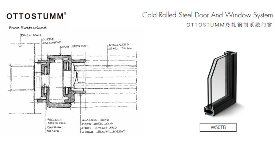 瑞士進(jìn)口的精密的冷軋鋼型材加工而成,高密度鑄聚氨酯隔離層,K ≥1.58W/(㎡.K)