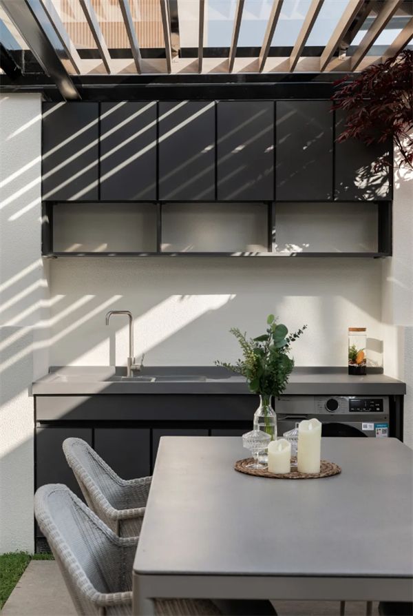 朱曉鳴設計師為了使視線闊達,同時滿足業(yè)主心愿,原計劃拆除廚房和衛(wèi)生間之間的一堵薄墻,但清拆后發(fā)現,因老房子建筑標準不規(guī)范,這堵薄墻正是承重墻。隨即,他采用了橋梁、隧道等特種工程才會用到的超高性能混凝土,對這堵薄墻以及頂層的預制板都進行了加固。這樣的設計雖然會影響設計師的格局劃分,但對業(yè)主家,甚至整棟建筑的安全性都提供了一種堅實的保障。