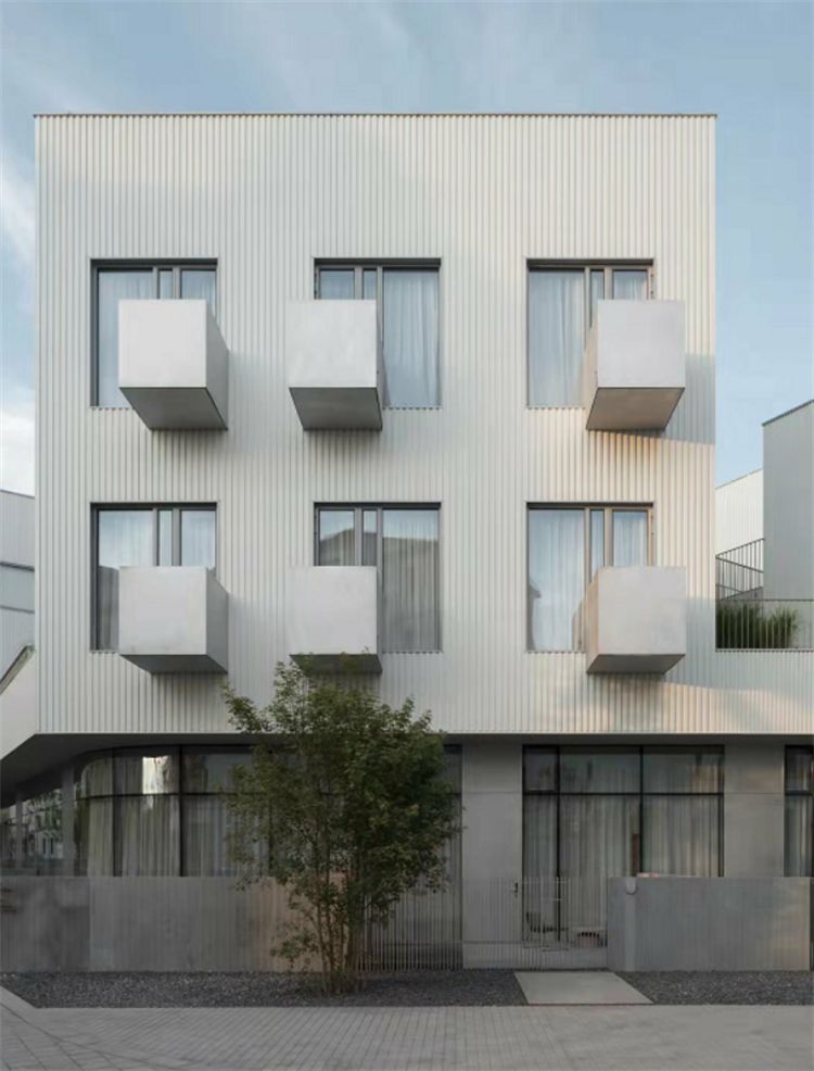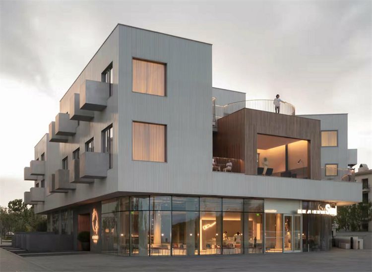 其中,一層商鋪區(qū)使用的是日朗Appletree-AL65B 復(fù)古窄邊鋁合金系統(tǒng)門窗。
