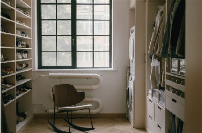 原來的主臥由于朝向問題采光不好,所以把這個(gè)空間做成了步入式衣帽間,