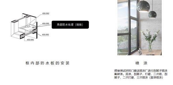 鋼窗的節(jié)能及美觀,還體現(xiàn)在生產(chǎn)工藝上!比如:鋼窗的組角工藝,鋼窗的打磨修整工藝(人工精細(xì)打磨修整),鋼窗的排水口工藝,鋼窗的焊接順序,鋼窗的安裝標(biāo)準(zhǔn),鋼窗的角部防水處理及噴涂處理上。
