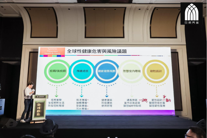 陳鴻全Tony作為此次活動(dòng)的“攢局人”,針對(duì)后疫情時(shí)代中室內(nèi)設(shè)計(jì)環(huán)境的規(guī)劃和智慧健康展開了深入討論見解,通過(guò)后疫情時(shí)代的新生活、疫情傳播途徑、建筑行業(yè)如何使用防疫措施、智慧室內(nèi)環(huán)境和韌性設(shè)計(jì)這5大主題展開詳述。