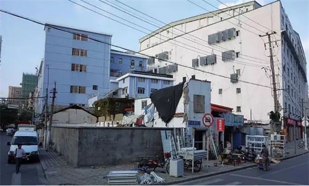 戰(zhàn)后,四行倉(cāng)庫(kù)作庫(kù)房用,1980年代后曾作家具城、文化用品市場(chǎng)等;外立面多次統(tǒng)一粉刷、厚達(dá)50~60mm;中央通廊被層層封堵;屋面后期加建二層時(shí),原立面女兒墻被拆;西墻西側(cè)搭建了多層廠房,西墻淹沒其中,難覓歷史蹤跡。