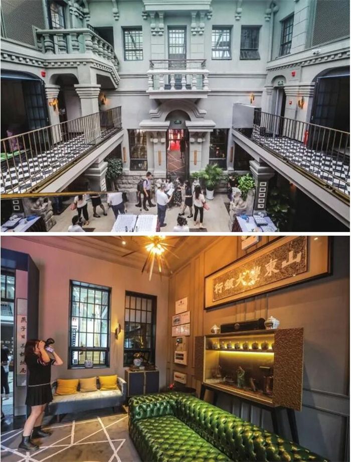 濟(jì)南老洋行的外建筑悉數(shù)保留更新,室內(nèi)則由國內(nèi)知名建筑大師沈雷、孫云為主導(dǎo)的團(tuán)隊(duì)精心設(shè)計(jì)。所有家具、燈具均為定制產(chǎn)品,體現(xiàn)融匯.中西,民國與傳統(tǒng),服務(wù)于現(xiàn)代社會的文明風(fēng)格。