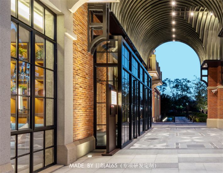 紅磚情調(diào)的石庫門,配黑色邊框的仿鋼制鋁合金門窗,這就是毗鄰迪士尼樂園的上海奕歐來奧特萊斯,讓中西文化在這里相互交融。